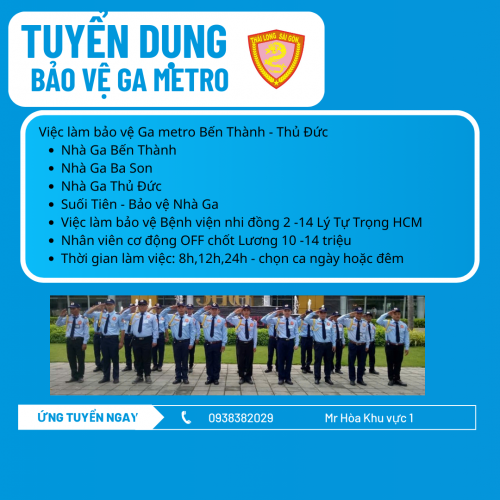 VIỆC LÀM BẢO VỆ - BẢO VỆ GA METRO BẾN THÀNH - THỦ ĐỨC